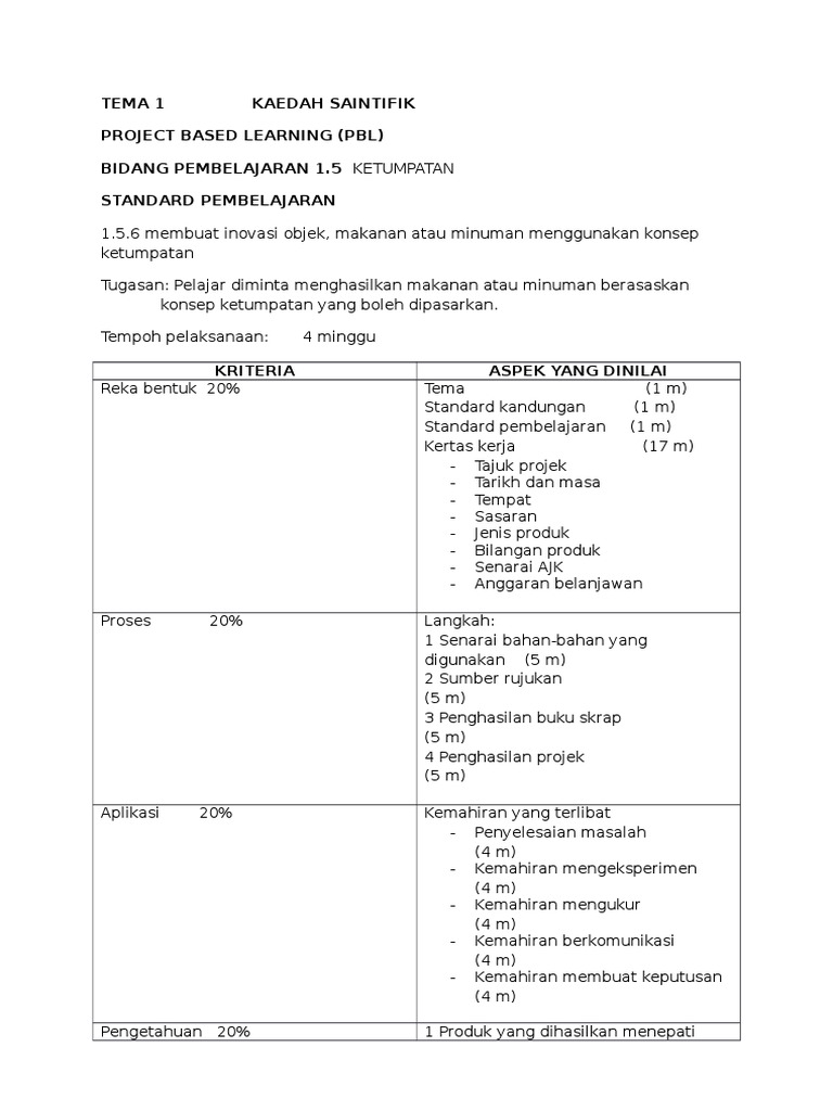 Contoh Kertas Kerja Projek Sains Pbl Pdf